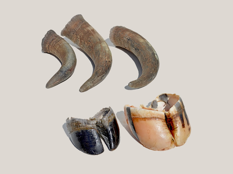Retirados durante o processo de abate, os chifres e cascos são embalados e estocados.
